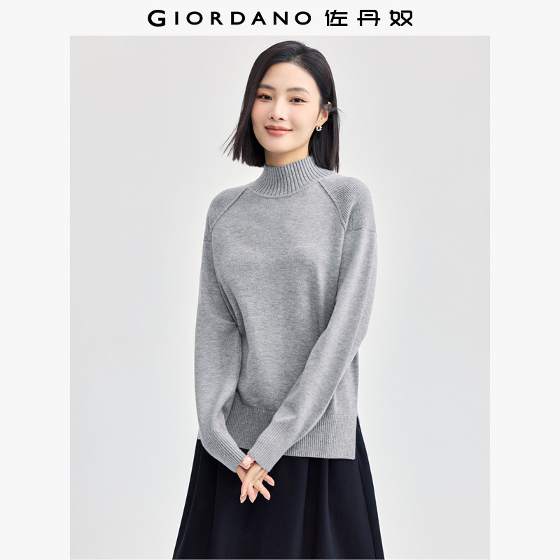 佐丹奴极细针织衫女软糯拼接插肩袖半高领套头针织毛衣女13354688
