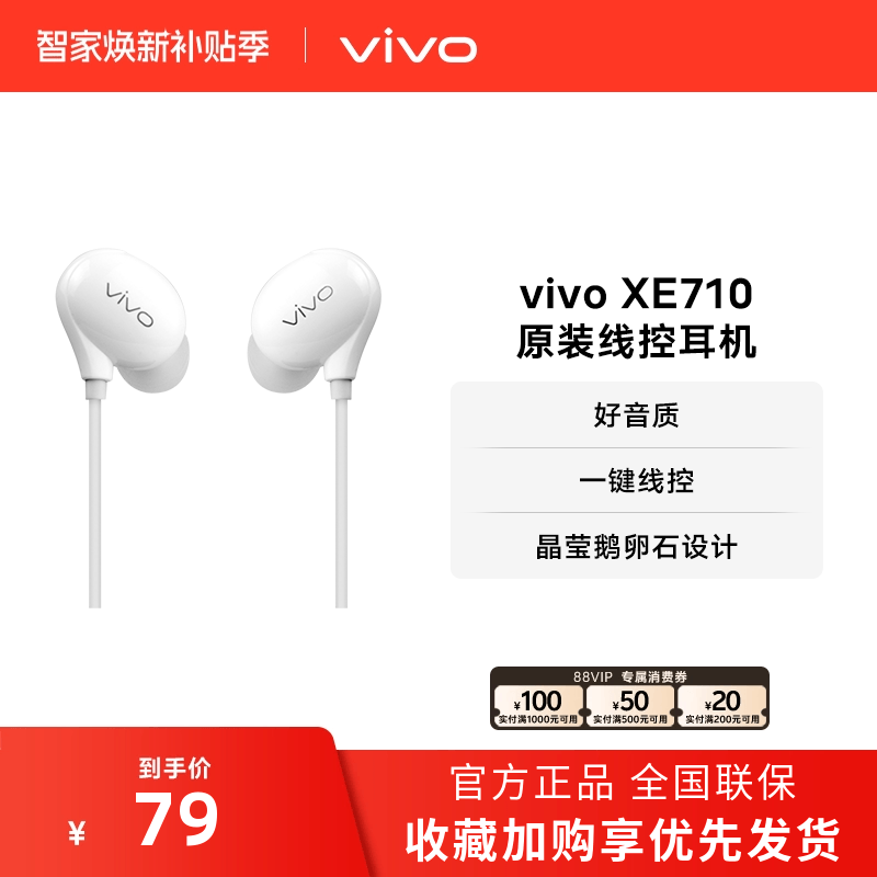 vivo耳机原装正品XE710入耳式X90X80x50X60原配S10S15有线高音质