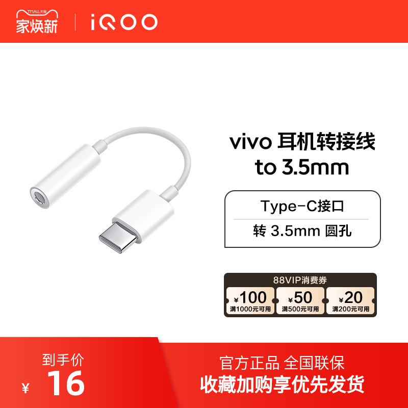 vivo 耳机转接线Type-C to 3.5mm耳机转换器原装正品官方旗舰店