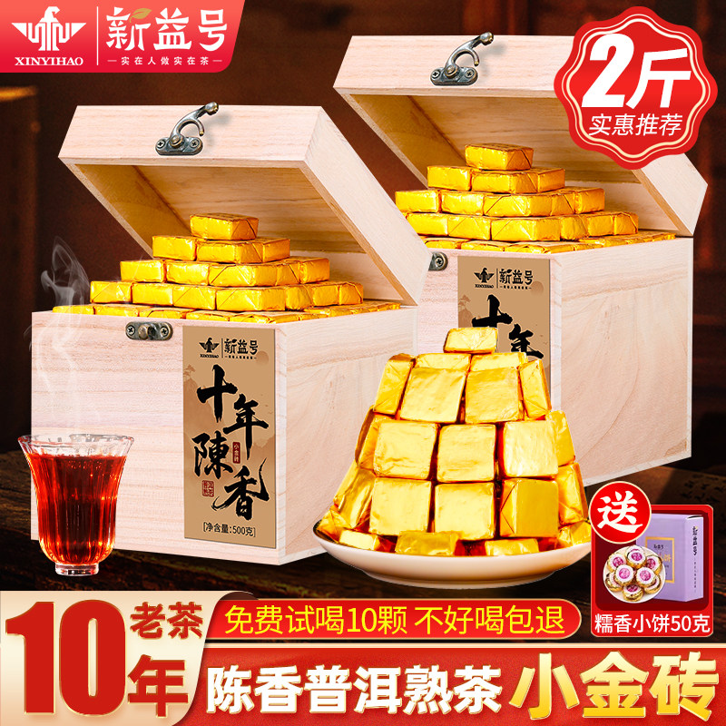 普洱茶熟茶新益号小沱茶饼云南小金砖十年熟普洱散茶包糯米香茶叶