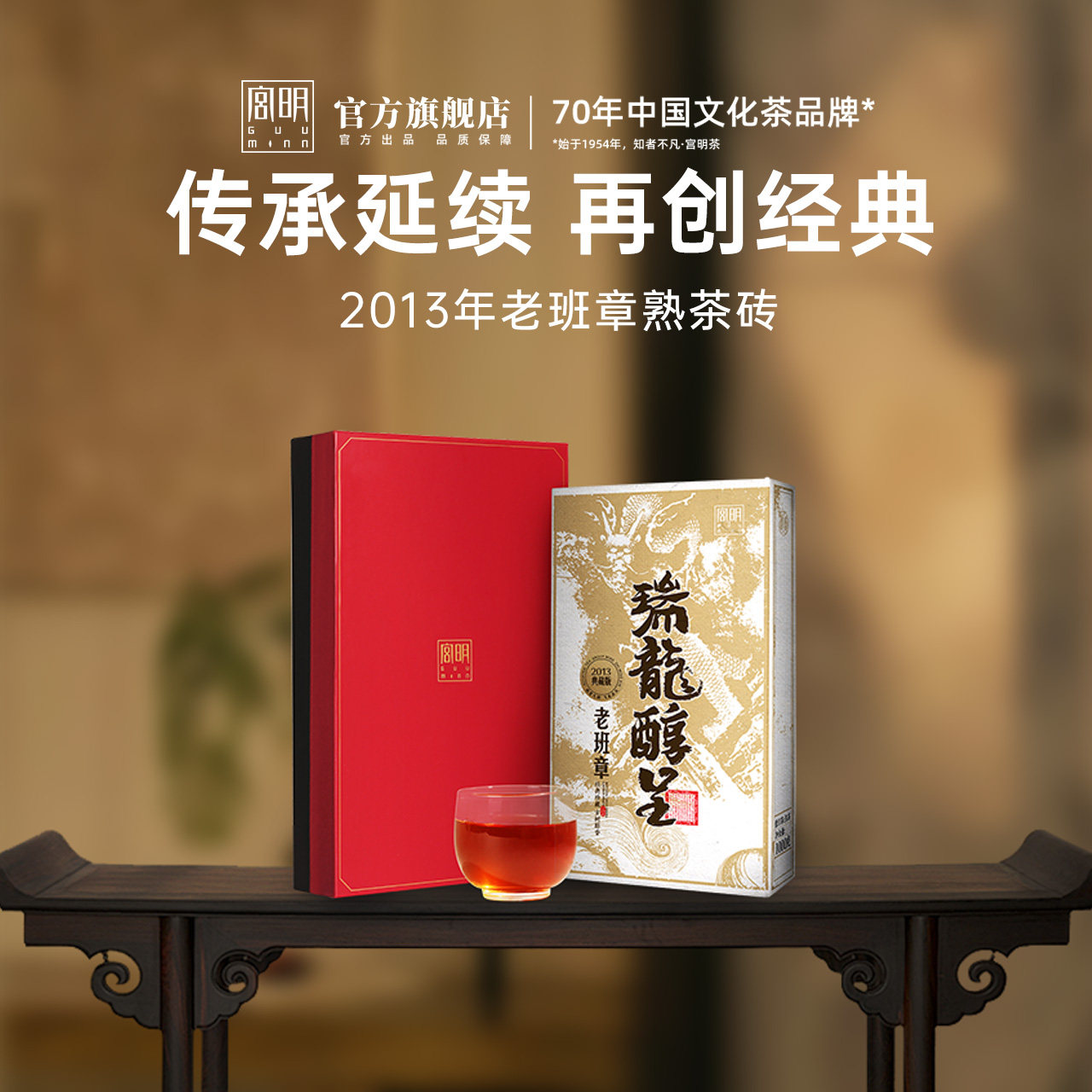 宫明茶叶 镇店老茶十年老班章古树熟普 云南普洱茶熟茶砖1000克
