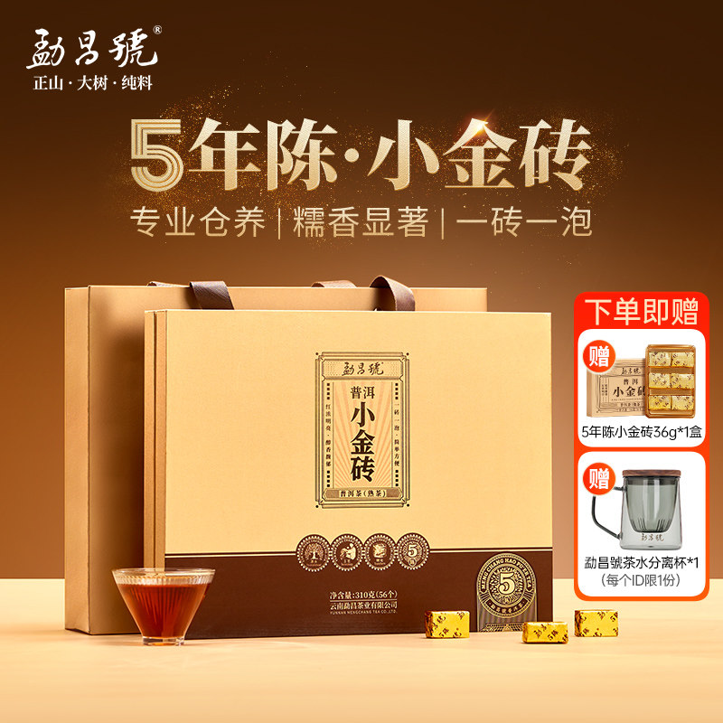 宫明茶叶 云南普洱茶熟茶糯米香小金砖普洱熟茶小圆饼320克礼盒装