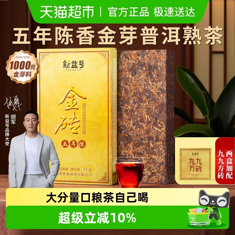 新益号普洱茶熟茶砖五年陈金砖云南勐海古树金芽熟茶叶熟普自己喝