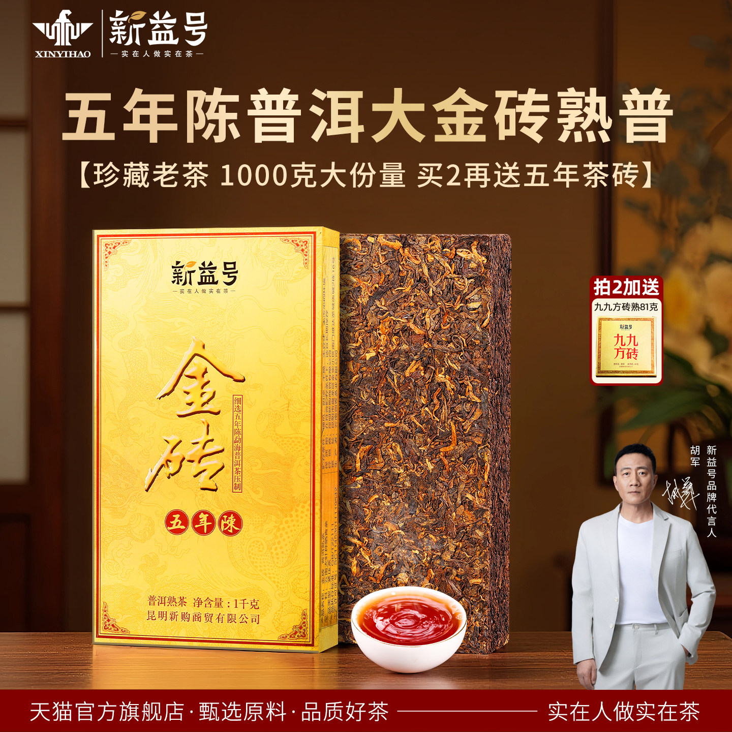 1000g熟普新益号升级版五年金砖云南勐海陈年普洱茶熟茶砖黑茶叶