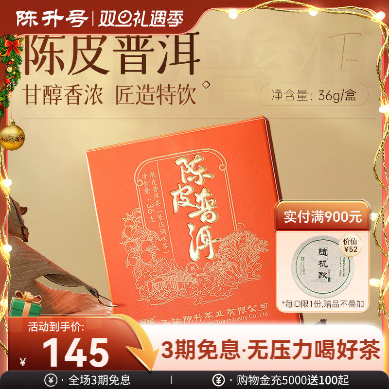 【自饮推荐】2023年陈升号陈皮普洱36g普洱茶熟茶砖云南普洱茶叶