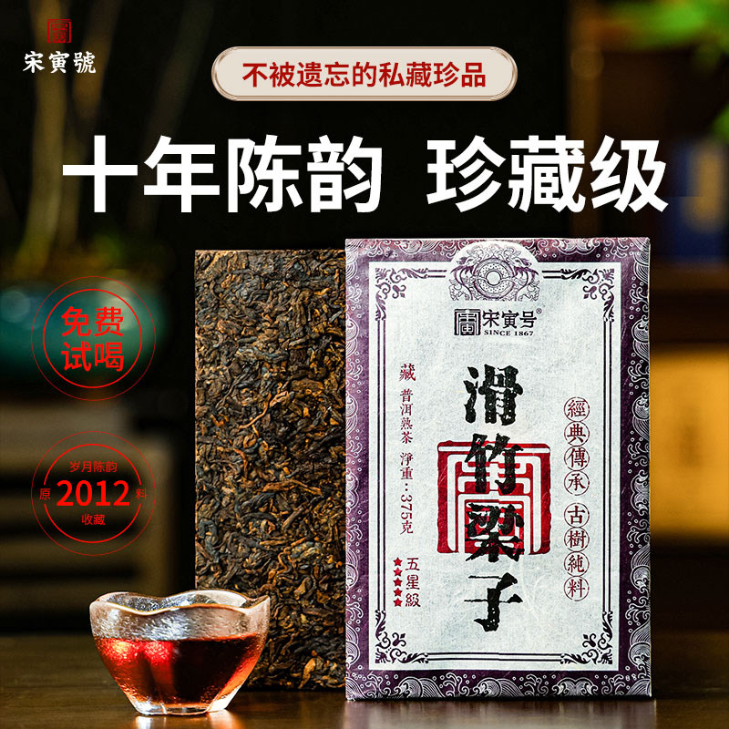 【宋寅号】滑竹梁子2017年古树普洱茶熟茶砖云南勐海大叶种茶375g