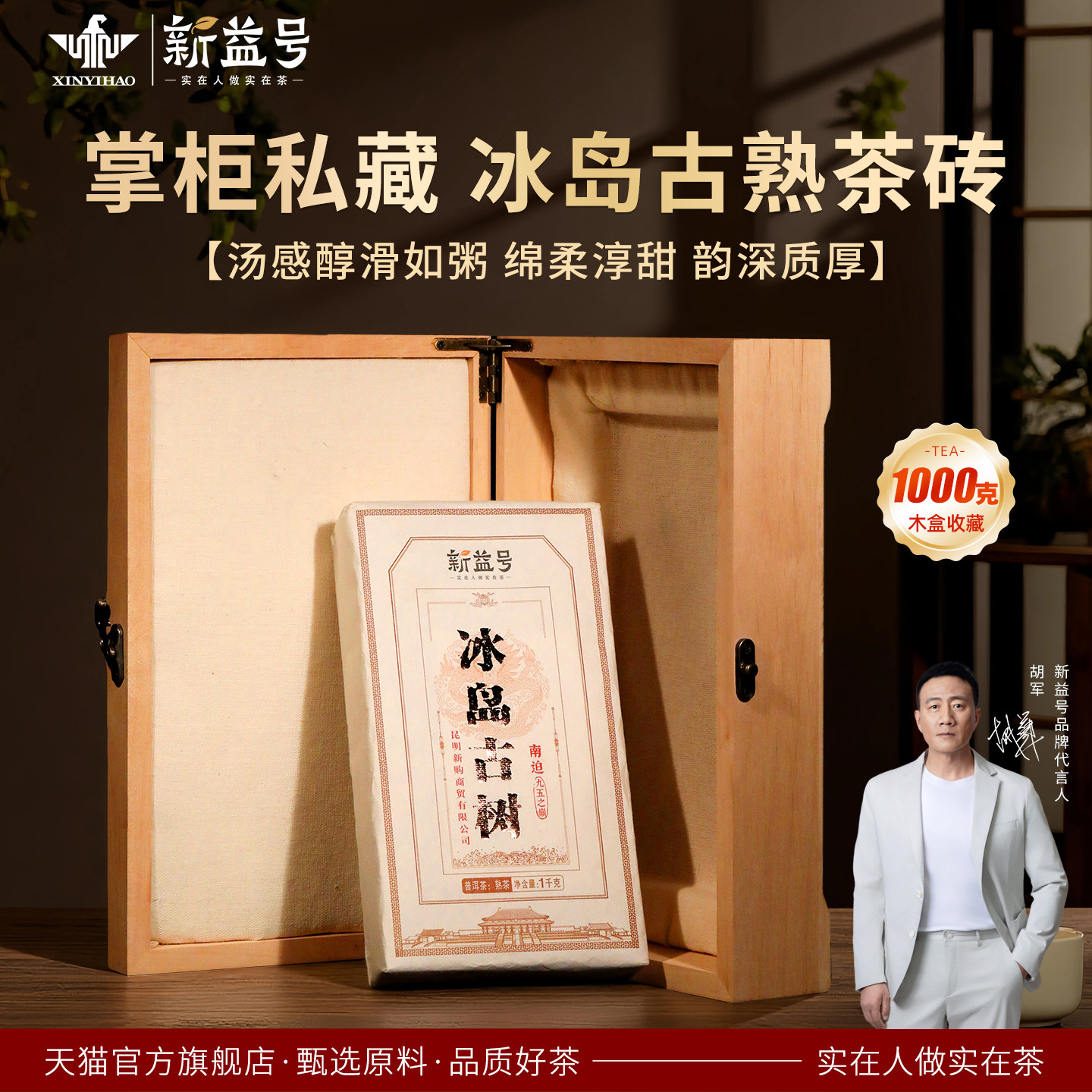 冰岛古树普洱茶熟茶砖1000克新益号云南收藏级熟普洱砖茶叶礼盒装