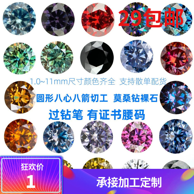1.0-11mm 5克拉彩色D色组合莫桑石圆形裸钻 粉钻蓝钻祖母绿皇家蓝