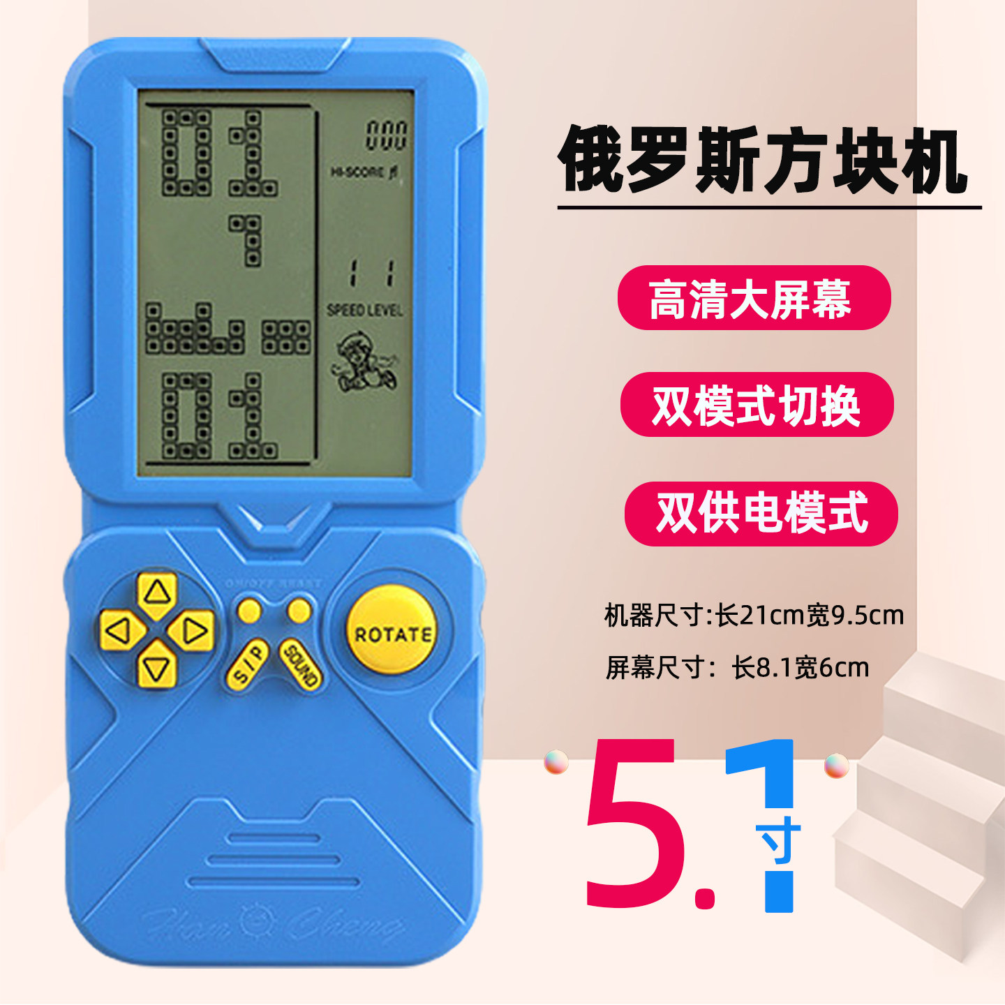 俄罗斯方块机游戏掌机5.1寸高清大屏可充电怀旧老式儿童益智玩具
