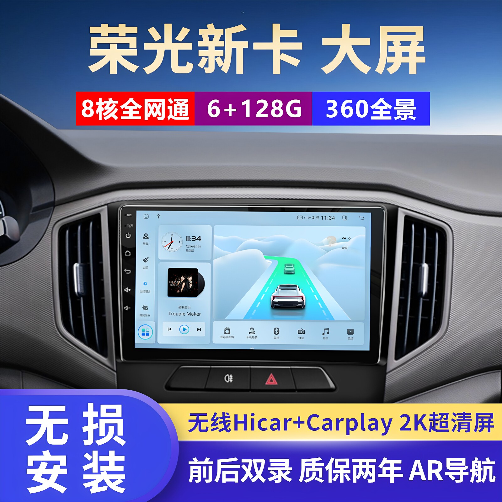新款导航仪Carplay Hicar安卓投屏中控台智慧屏4K高清行车记录仪