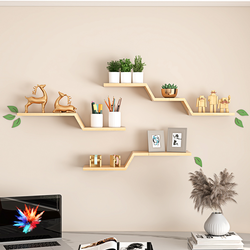 实木墙上隔板置物架客厅背景墙装饰木板办公室创意墙面书架一字板