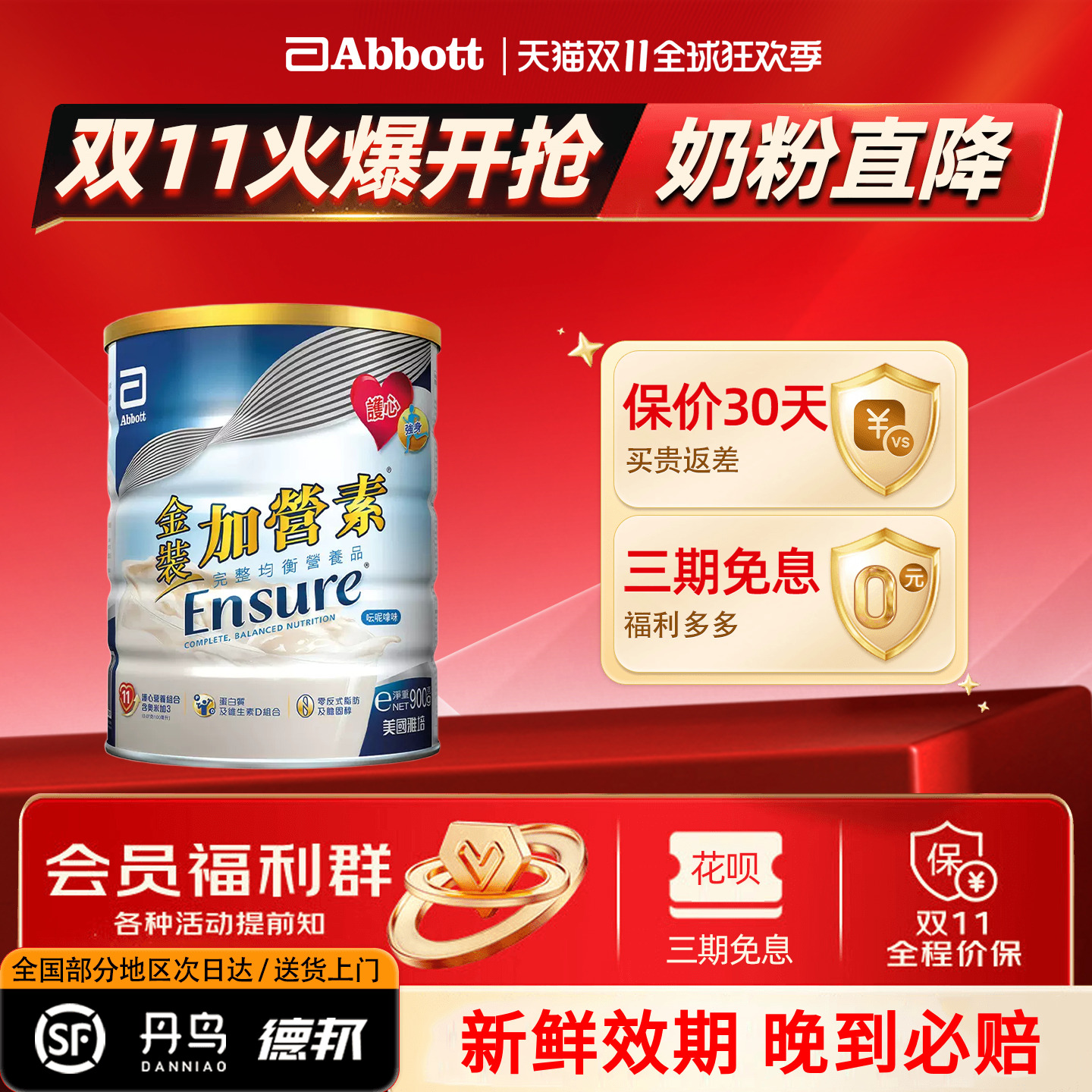 雅培升级版活力加营素进口成人奶粉营养粉香草味850g增肌强身港版