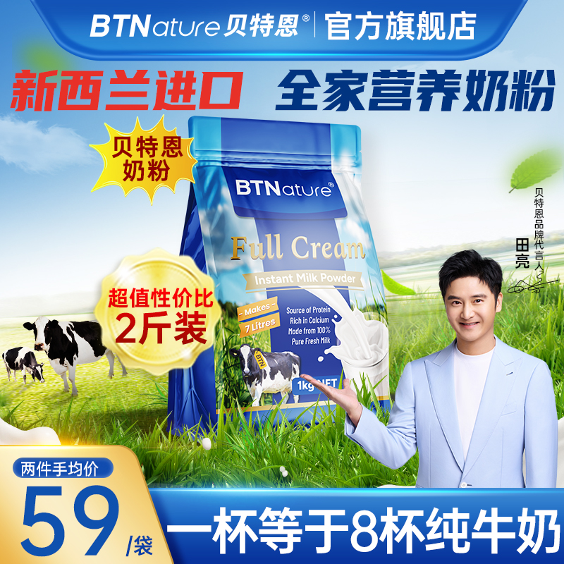 新西兰进口奶粉成人学生儿童中老年贝特恩蓝全脂脱脂袋装1kg胖子