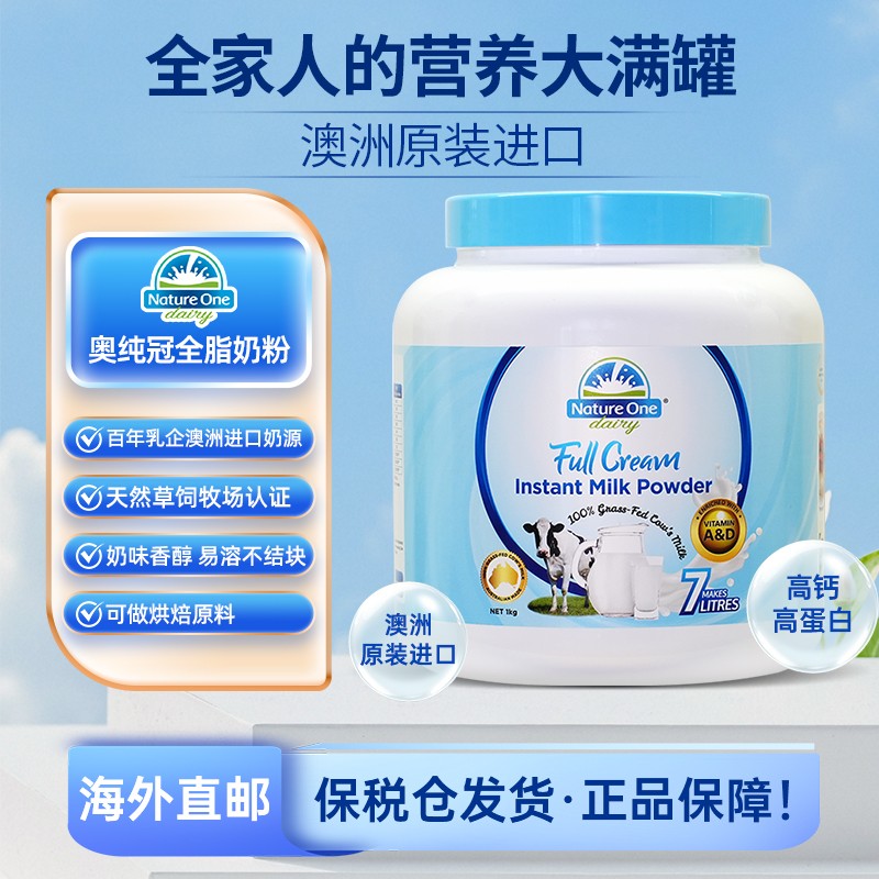NatureOneDairy奥纯冠澳洲进口成人奶粉全脂/脱脂奶粉日期26.8