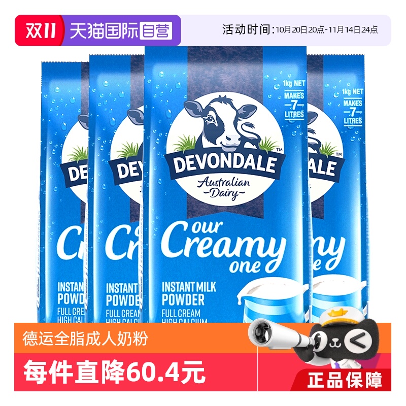 【自营】澳洲进口德运全脂高钙全家儿童成人营养牛奶粉1kg*4袋