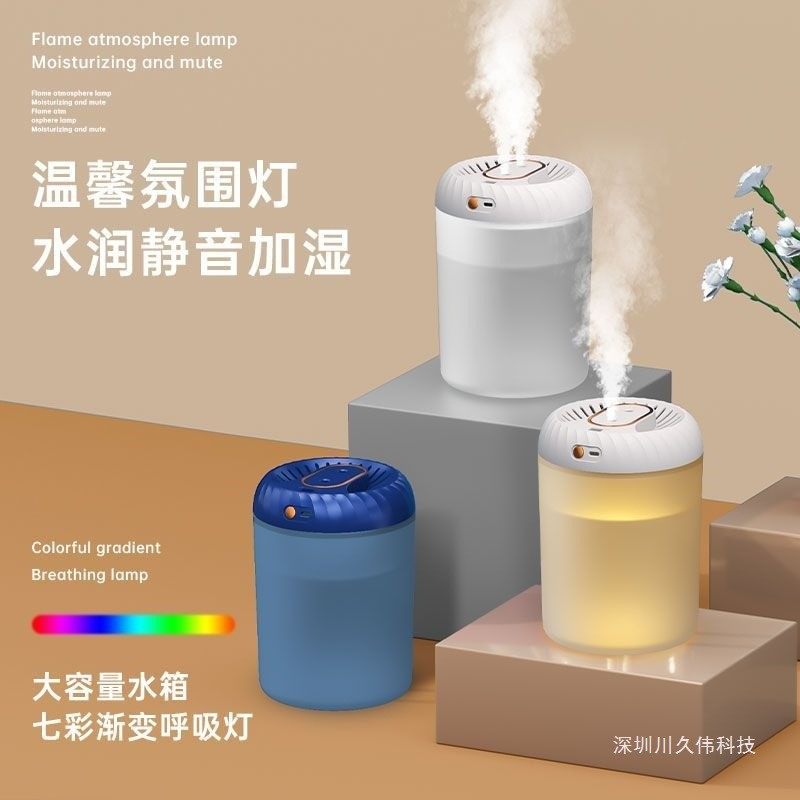 新款6.8L大容量加湿器USB双喷雾家用宿舍办公室卧室桌面带小夜灯
