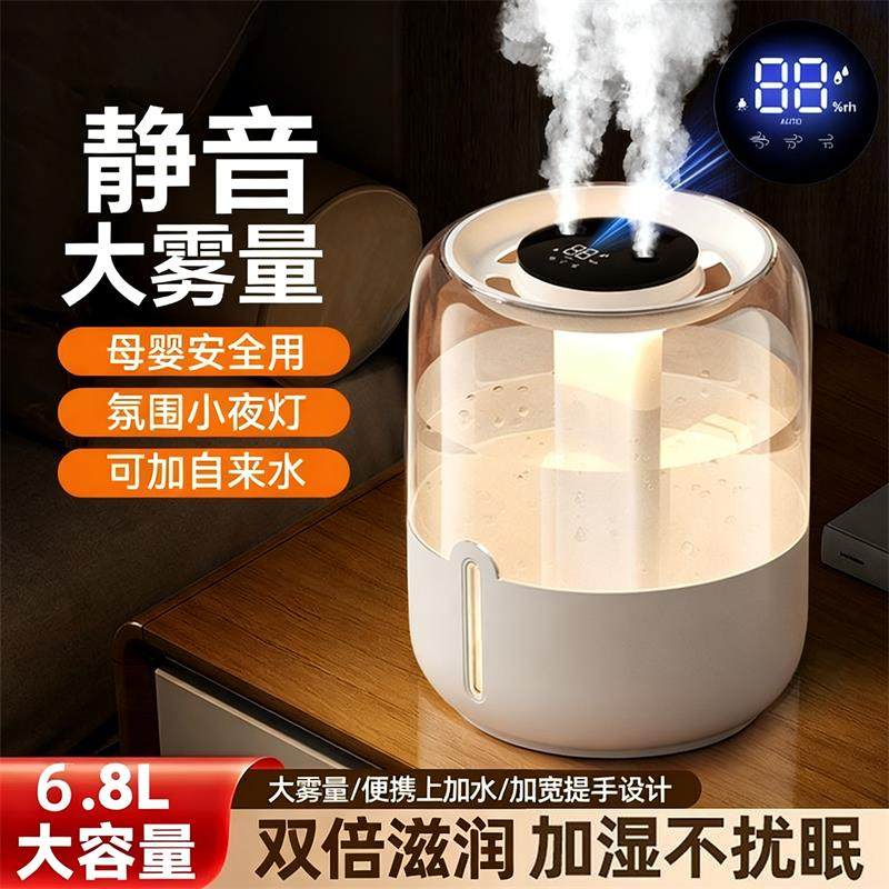 【2024新款】6.8L加湿器大容量双喷家用静音大雾量卧室孕妇婴儿空气办公室桌面喷雾香薰精油宿舍学生女生礼物