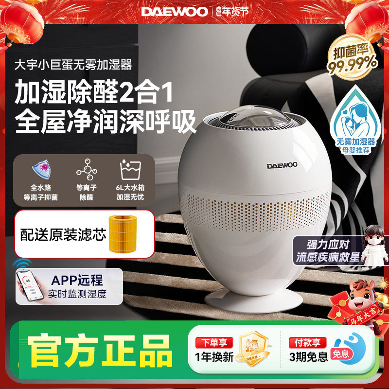 大宇加湿器小巨蛋家用卧室内空气加湿器大容量大宇无雾加湿器ph05