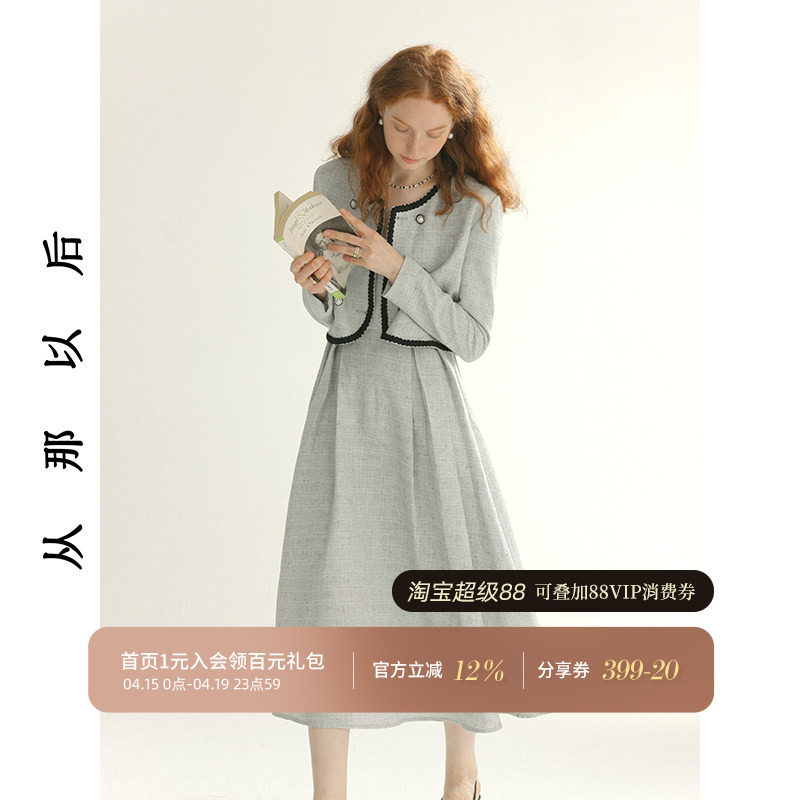 从那以后小香风穿搭套装裙秋冬富家千金高级感连衣裙两件套女秋季