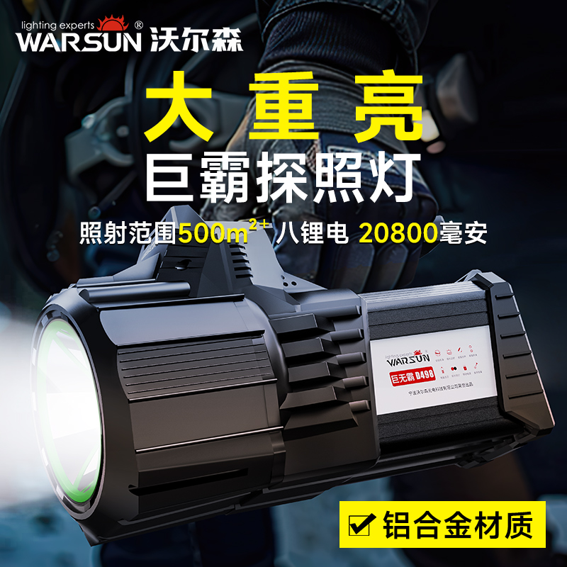 沃尔森大功率超亮手电筒强光充电手提探照灯户外超强远射家用巡逻