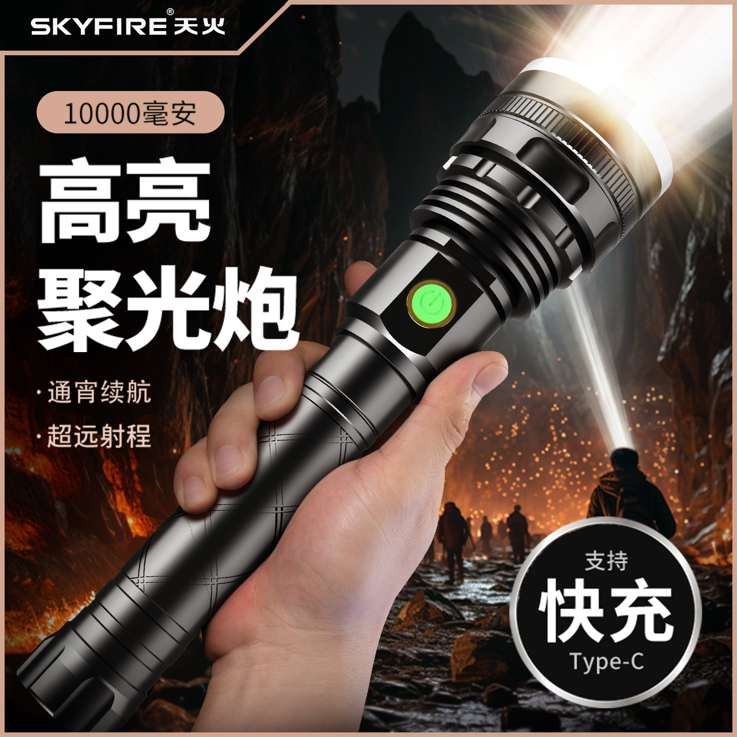 天火超强光超亮手电筒充电耐用家用户外露营便携超长续航巡逻远射