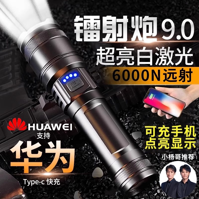 官方推荐】手电筒强光LED射激光镭远射超强续航户外耐用小型充电