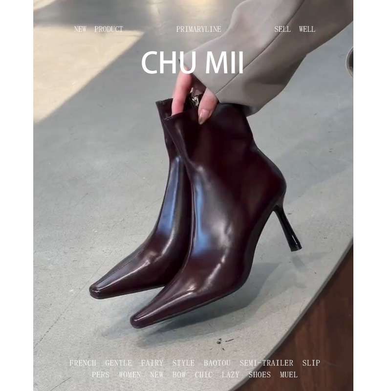 23秋季新款法式尖头细跟9公分侧拉链高跟短靴侧拉链女性感时装