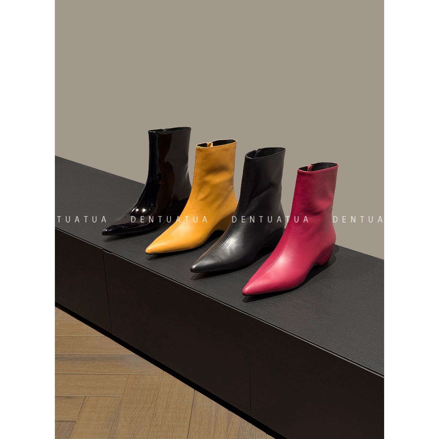 DENTUATUA 都市女性的权力雕塑!25ss 尖头坡跟侧拉链短靴 女