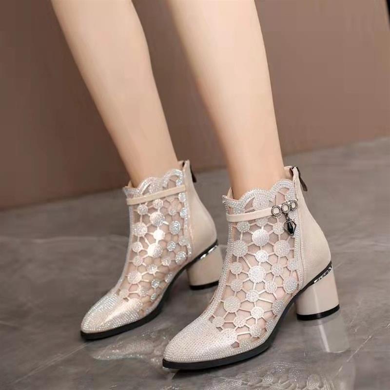 春夏季新款镂空网靴女性感透气网纱马丁靴女靴子时尚百搭高跟短靴