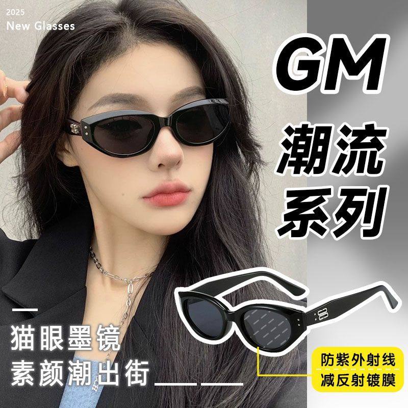 2025新款GM太阳镜男女同款复古猫眼窄框街拍素颜潮搭防嗮近视墨镜