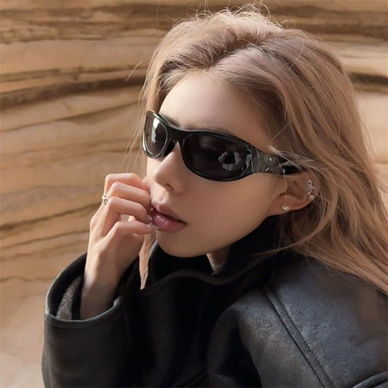 运动骑行爬山墨镜Y2K辣妹猫眼gm太阳镜显瘦欧美黑色方圆脸潮显瘦