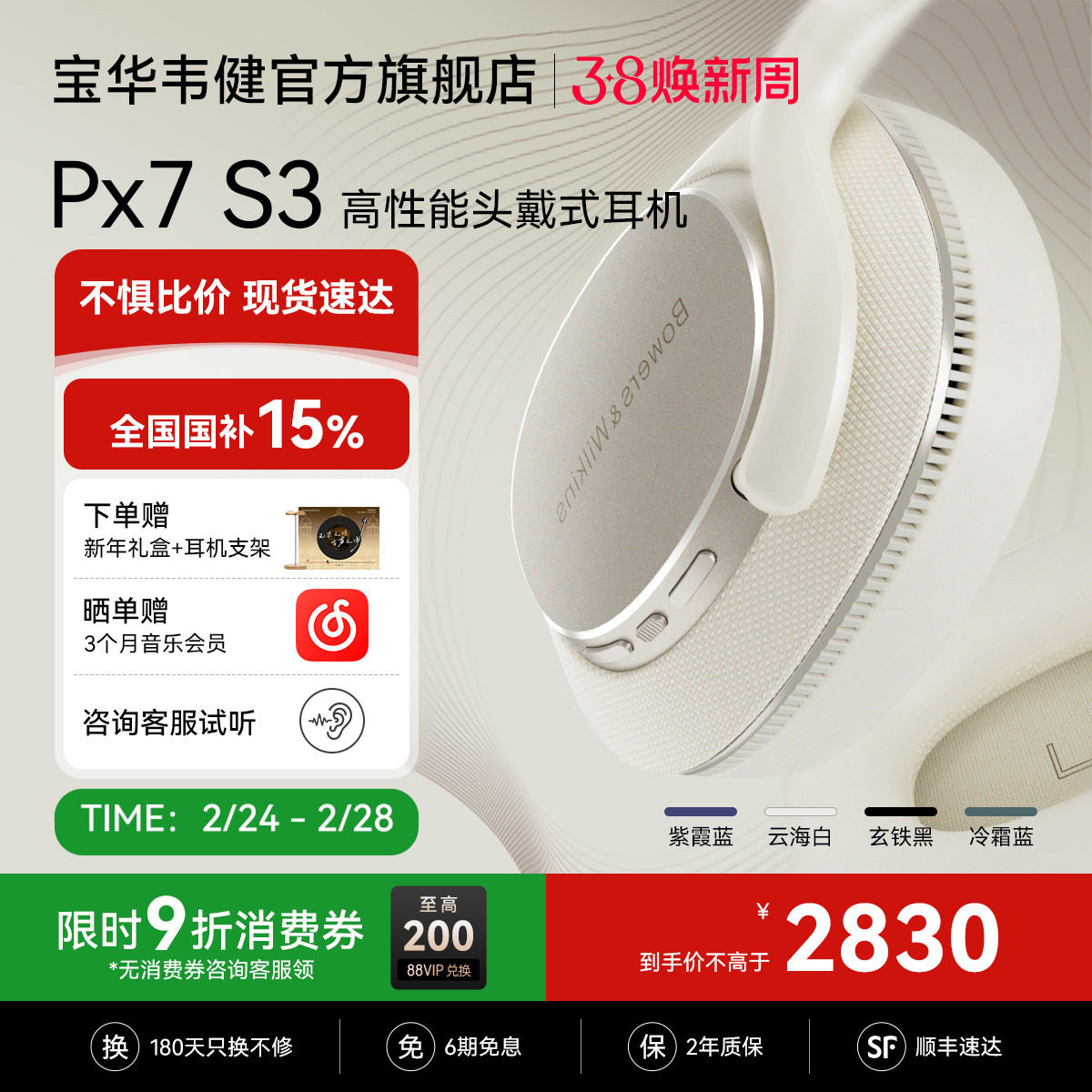 政府补贴BW宝华韦健Px7s3无线蓝牙降噪头戴式耳机hifi高音质 官方