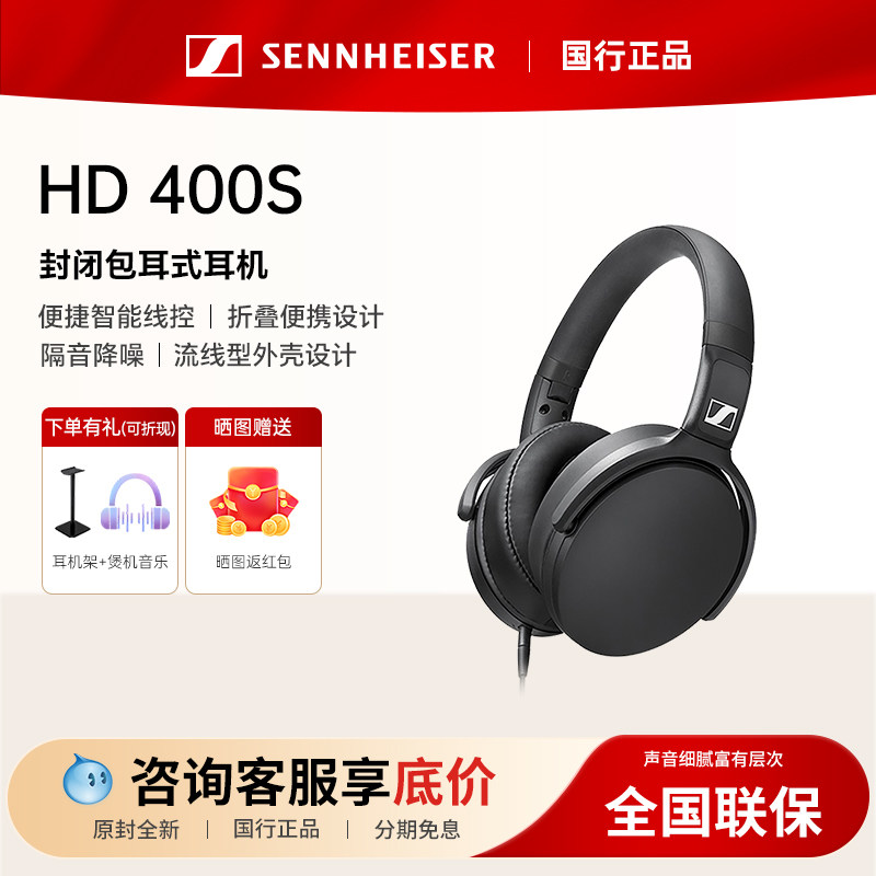 森海塞尔耳机头戴式有线 HD400S 重低音隔音降噪手机线控HIFI耳麦