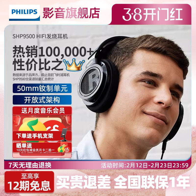 飞利浦SHP9500CY头戴式HIFI音乐手机直推耳机开放式监听游戏耳麦