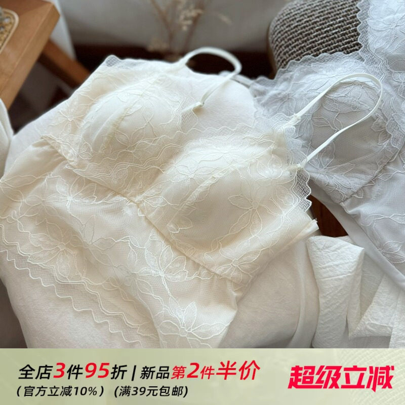 法式蕾丝美背小吊带背心内衣女纯欲风性感带罩杯文胸内搭外穿裹胸