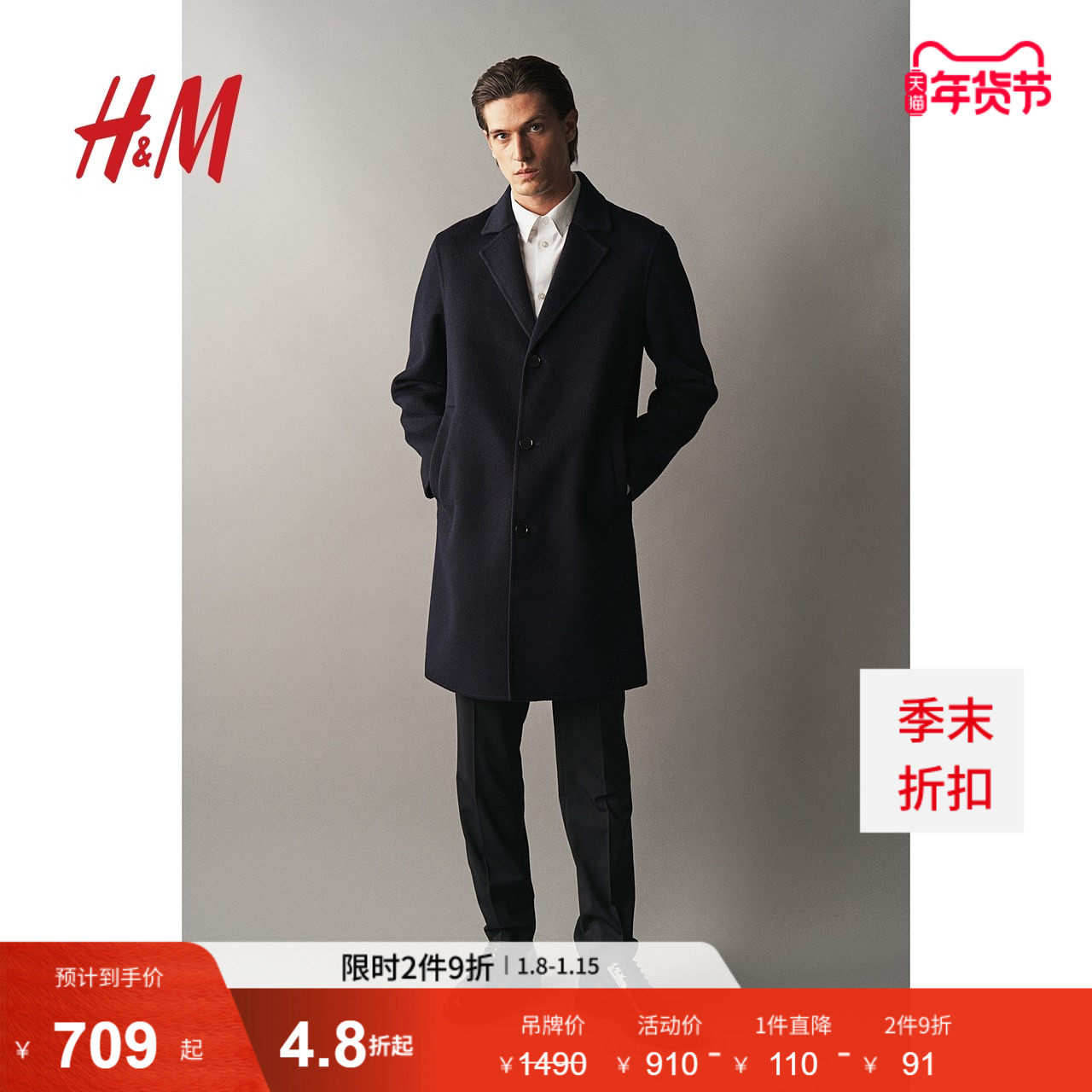 HM男装毛呢大衣冬季保暖冬装羊毛大衣中长款单排扣外套1246905