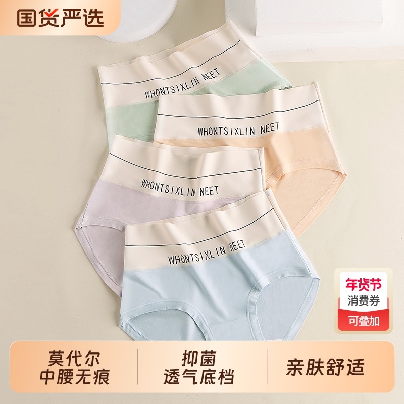 4条莫代尔女士内裤抗菌无痕低腰包臀日系少女木代尔中腰平角短裤