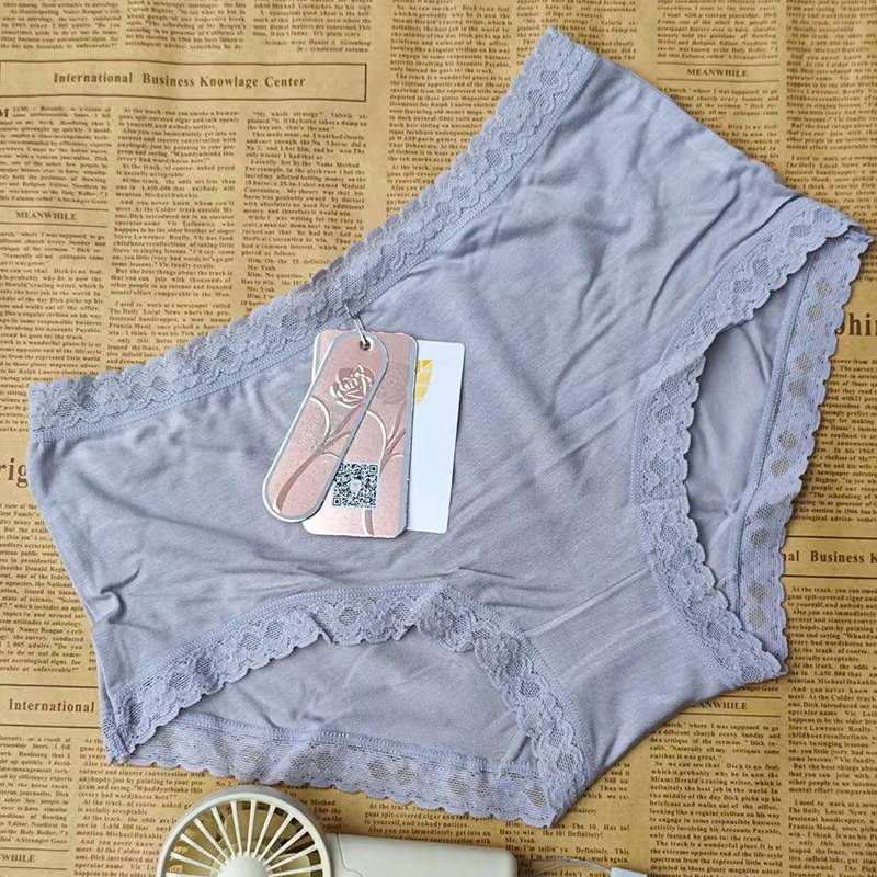 俏妮芬6412莫代尔中腰女士内裤超弹力木代尔蕾丝花边内裤平板多色