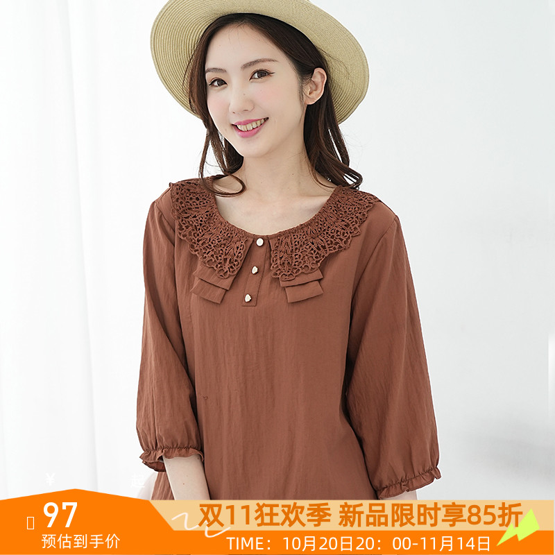 艾依琪格适合胖mm的大码女装2025年秋气质绣花娃娃领胖妹妹七分袖