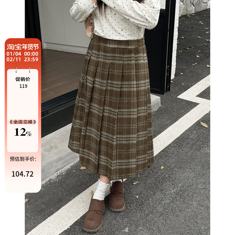 大码胖mm绝美巨好看的百褶裙子秋冬季女装加厚显瘦格纹毛呢半身裙