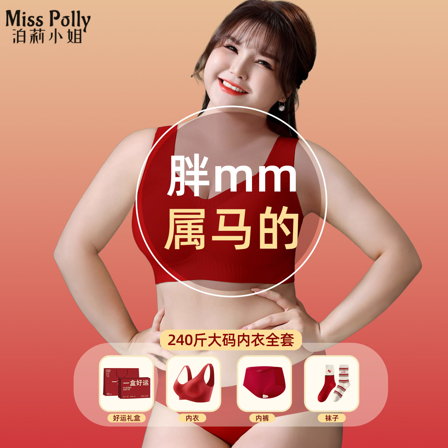 本命年大码女装红色内衣内裤套装2026属马年的人文胸罩200斤妈妈
