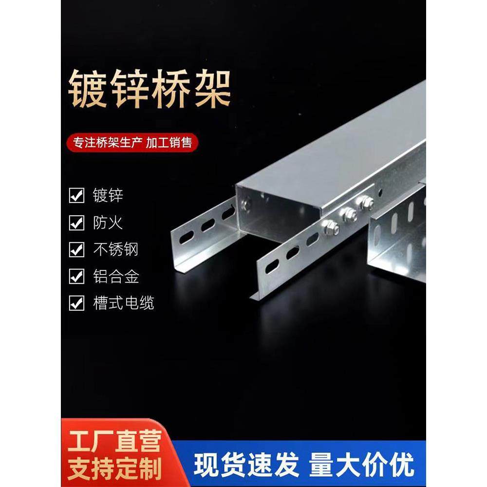 镀锌桥架防火烤漆铝合金不锈钢金属桥架线槽热浸锌槽式梯式100*50
