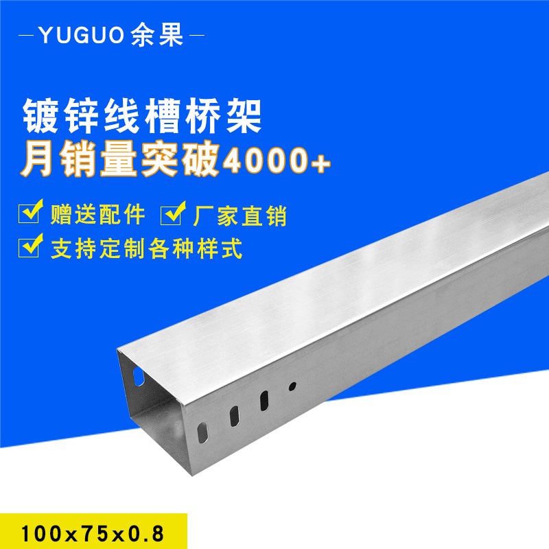 电缆桥架线槽金属桥架弱电桥架镀锌桥架铁线槽网络桥架100*75*0.8
