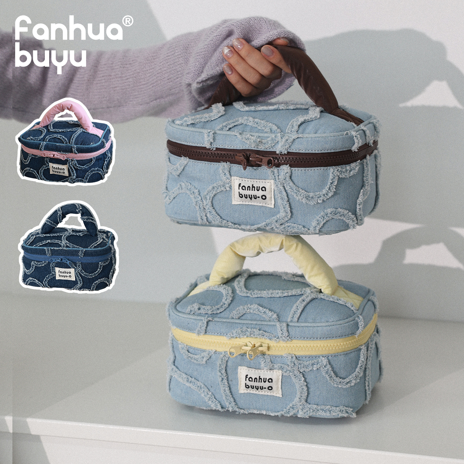 梵花不语可爱大容量手提化妆包便携女水洗牛仔护肤品收纳包洗漱包