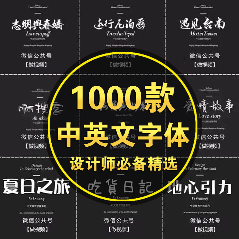500款免费商用精选设计字体合集手写毛笔书法艺术LOGO品牌可ps ai