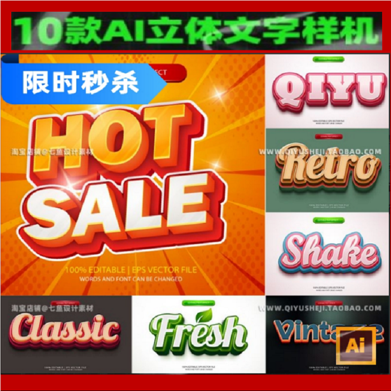 3D立体海报设计字体AI样机EPS矢量卡通动漫游戏特效文字效果
