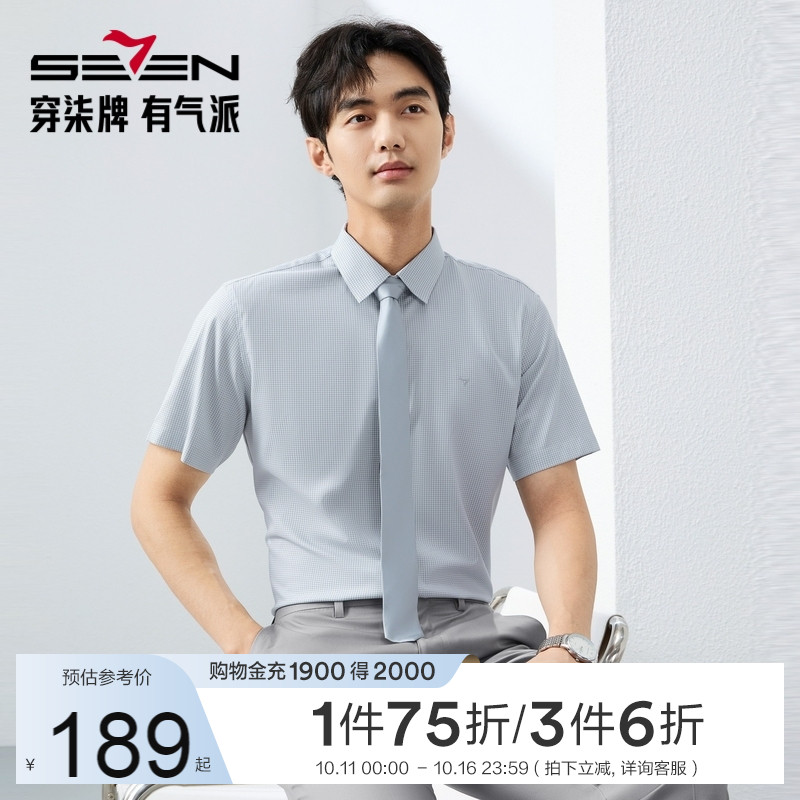 【含莫代尔】柒牌格纹提花短袖衬衫男士夏季新品时尚休闲翻领衬衣