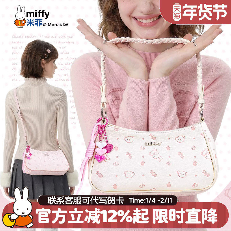 米菲冬季甜美压花腋下包包女式2026新款可爱手提单肩斜挎通勤约会