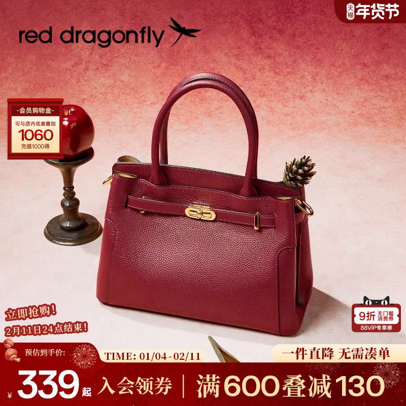 百丽包包女新款商场同款鎏金岁月礼物妈妈手提斜跨红色婚包X7242A