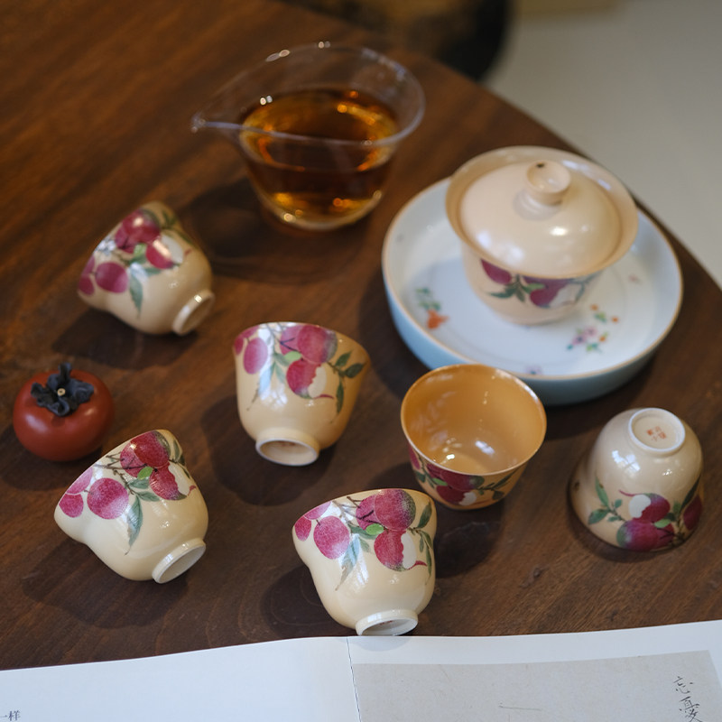 小谦山房柴烧手绘荔枝杯女士茶杯纯手工裸烧孤品陶瓷送礼中式茶具